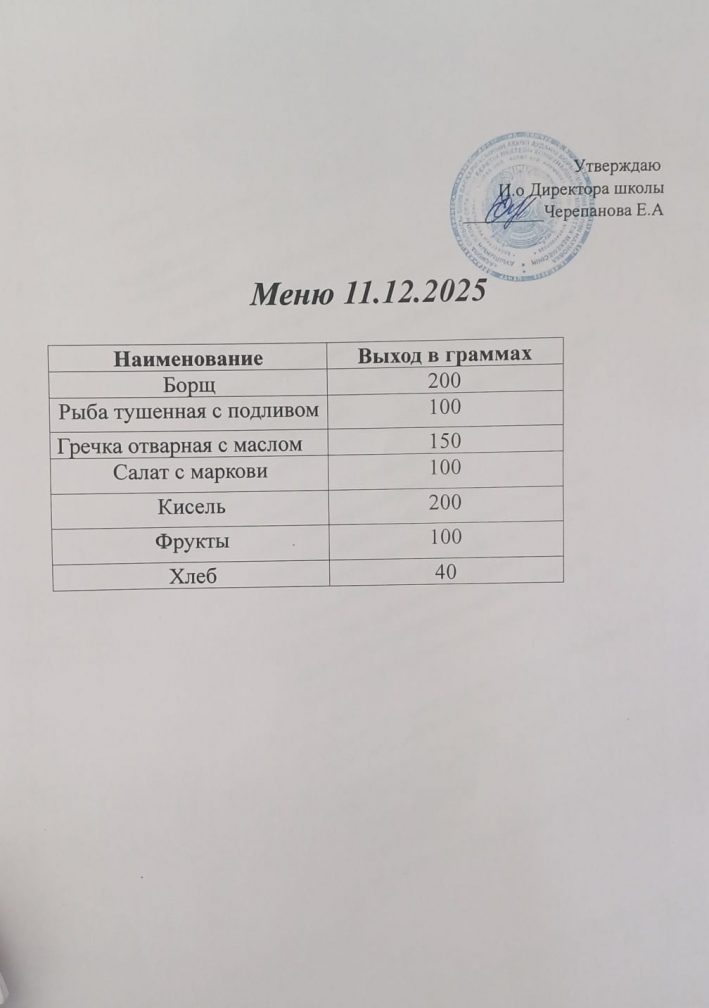 11.12.2025г. Комплексное бесплатное питание