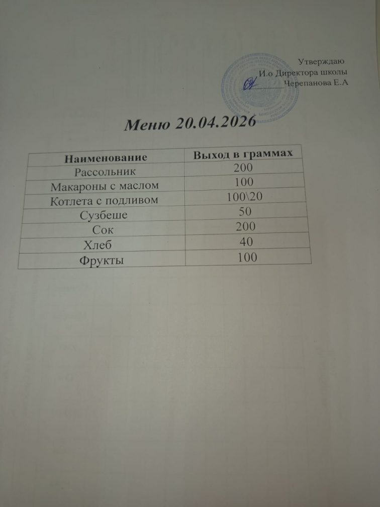 20.04.2026г. Комплексное бесплатное питание.