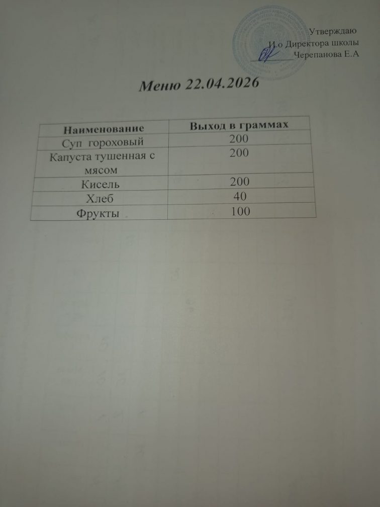 22.04.2026г. Комплексное бесплатное питание.