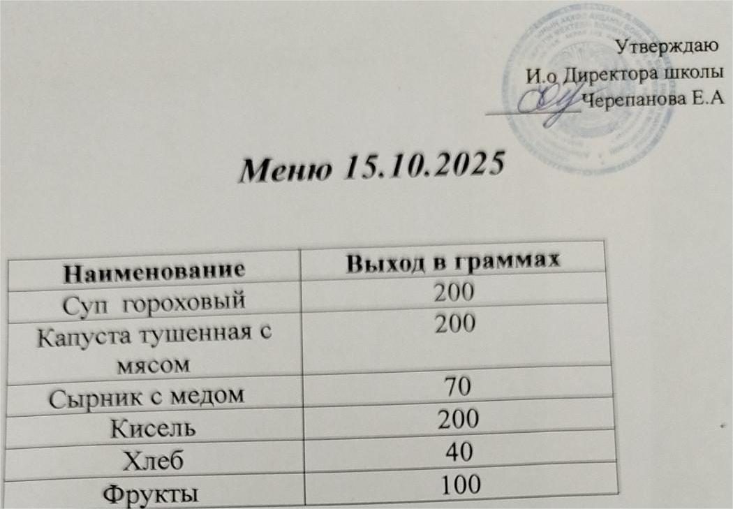 Меню на 10.15.2025г. Комплексное бесплатное питание