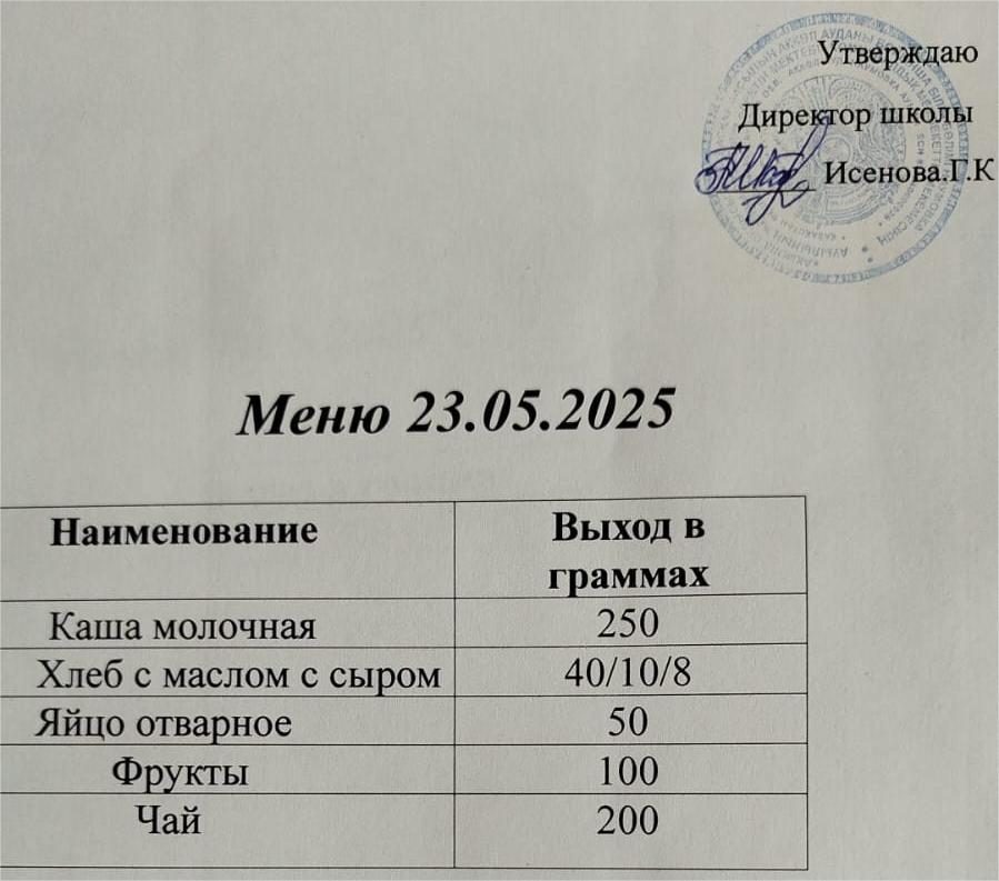 Меню на 23.05.2025г. Комплексное бесплатное питание