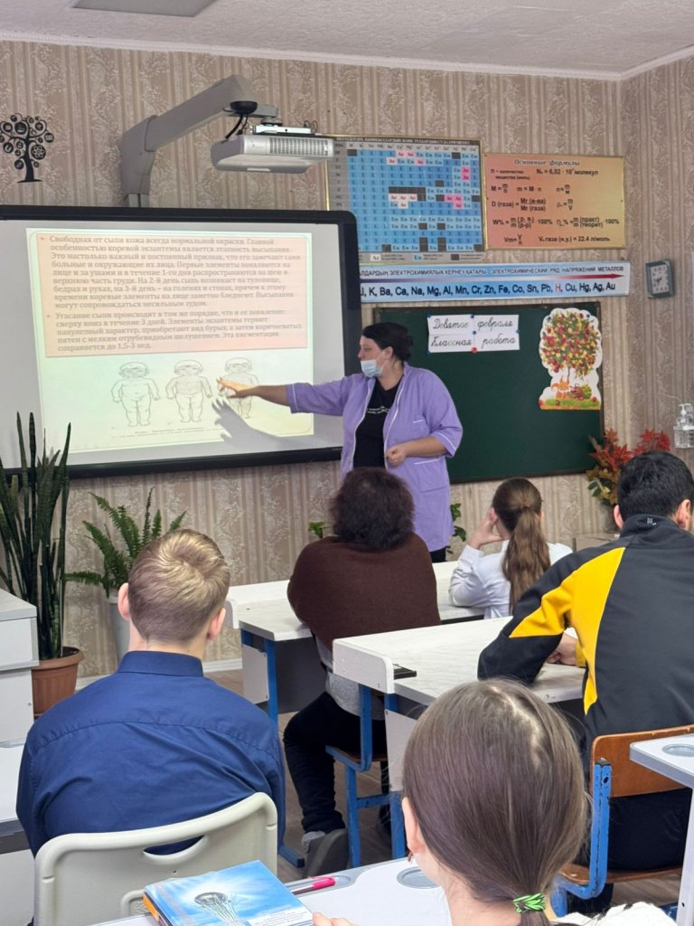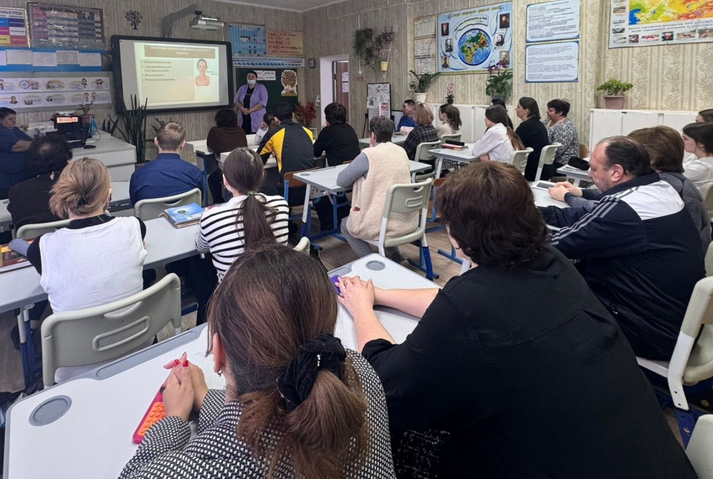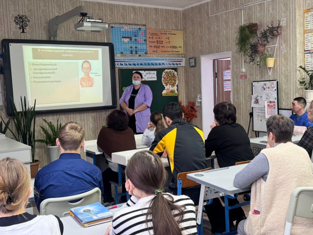 В школе прошла профилактическая беседа с работниками школы при участии медицинского работника, посвящённая вопросам профилактики кори. В ходе встречи были рассмотрены основные симптомы заболевания, пути передачи инфекции и алгоритм действий при выявлении признаков болезни у обучающихся. Особое внимание уделили вопросам вакцинации, соблюдению санитарно-гигиенических норм и мерам по недопущению распространения инфекции в образовательной организации. Участники беседы получили разъяснения по профилактическим мерам и задали интересующие вопросы. Подобные встречи способствуют повышению информированности коллектива и обеспечению безопасных условий пребывания детей в школе.