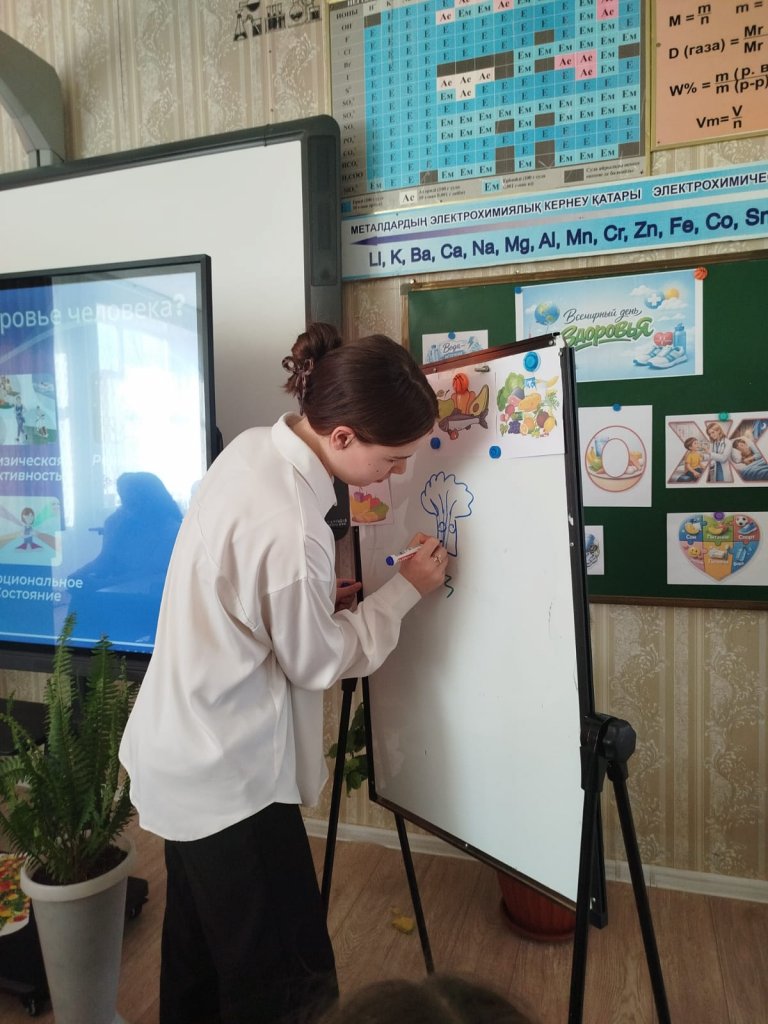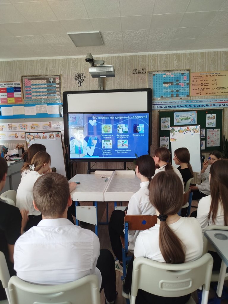 Мельникова Т.В., классный руководитель 8 класса, провела для учащихся 8-11 классов классный час ко Всемирному дню здоровья с приглашением Валендер Т.А., школьного медработника, которая провела беседу о здоровье в подрастающем возрасте. В мероприятии приняла участие вожатая школы Брух С.В., которая познакомила детей с презентацией "О вкусной и здоровой пище". Две команды посоревновались в знании пословиц, поговорок о правильном питании